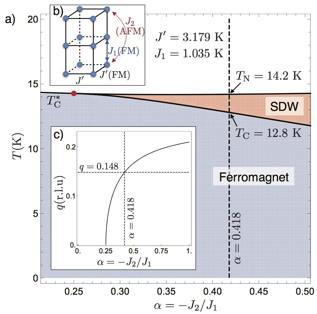 magnetic phase transition is first order at low temperatures but becomes continuous above a certain temperature. At this energy scale,