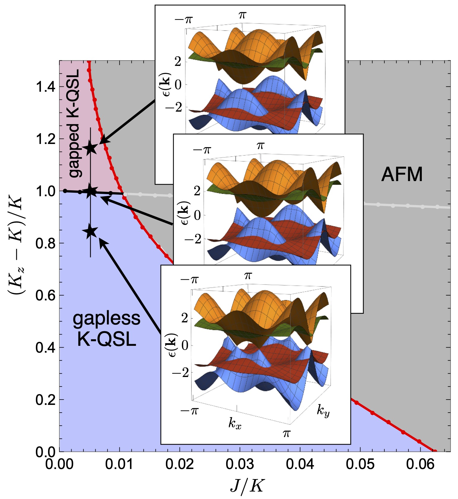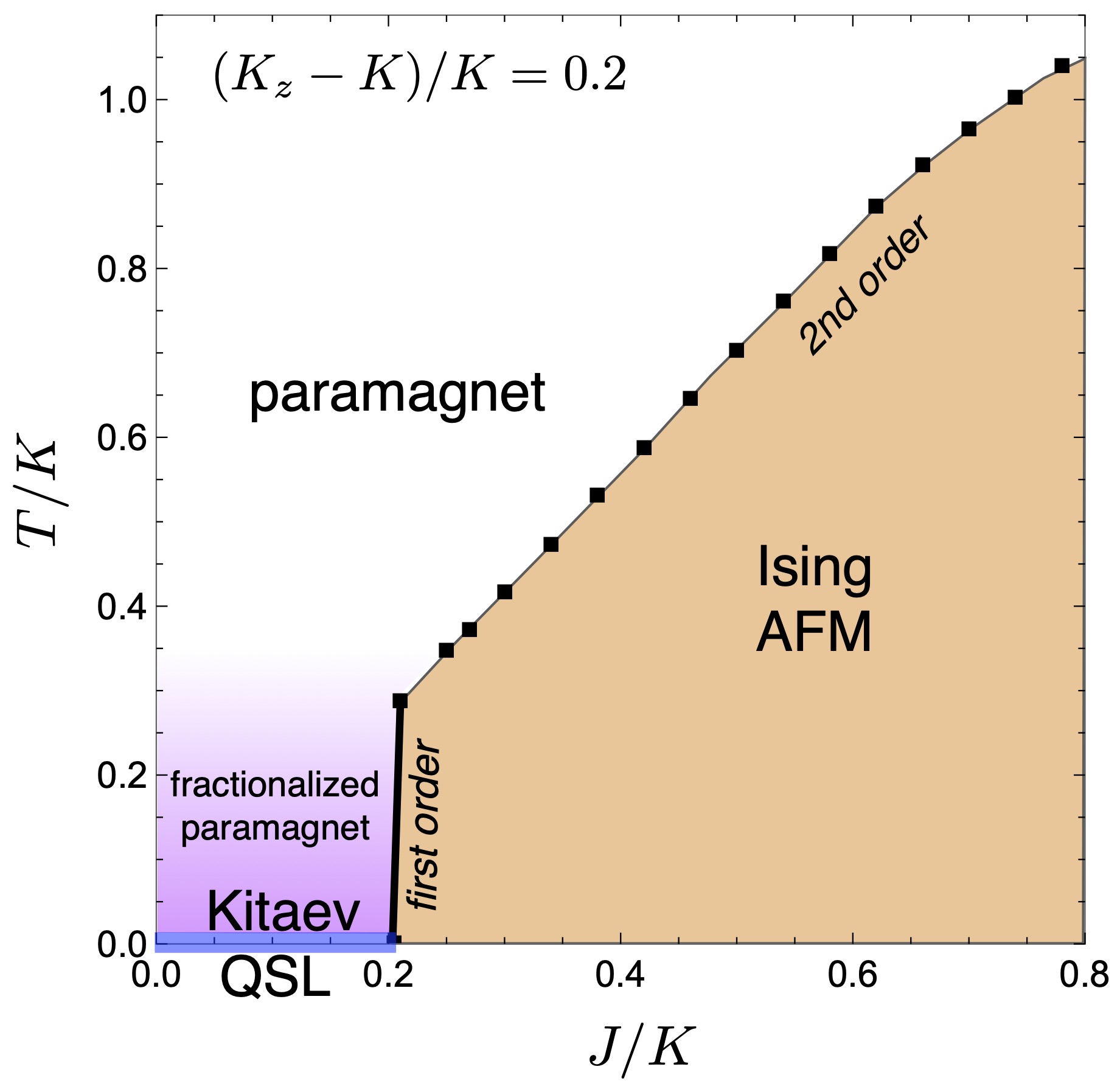diagrams as a function of the anisotropy of the Kitaev couplings and the relative strength of the Ising exchange. While both mean-field