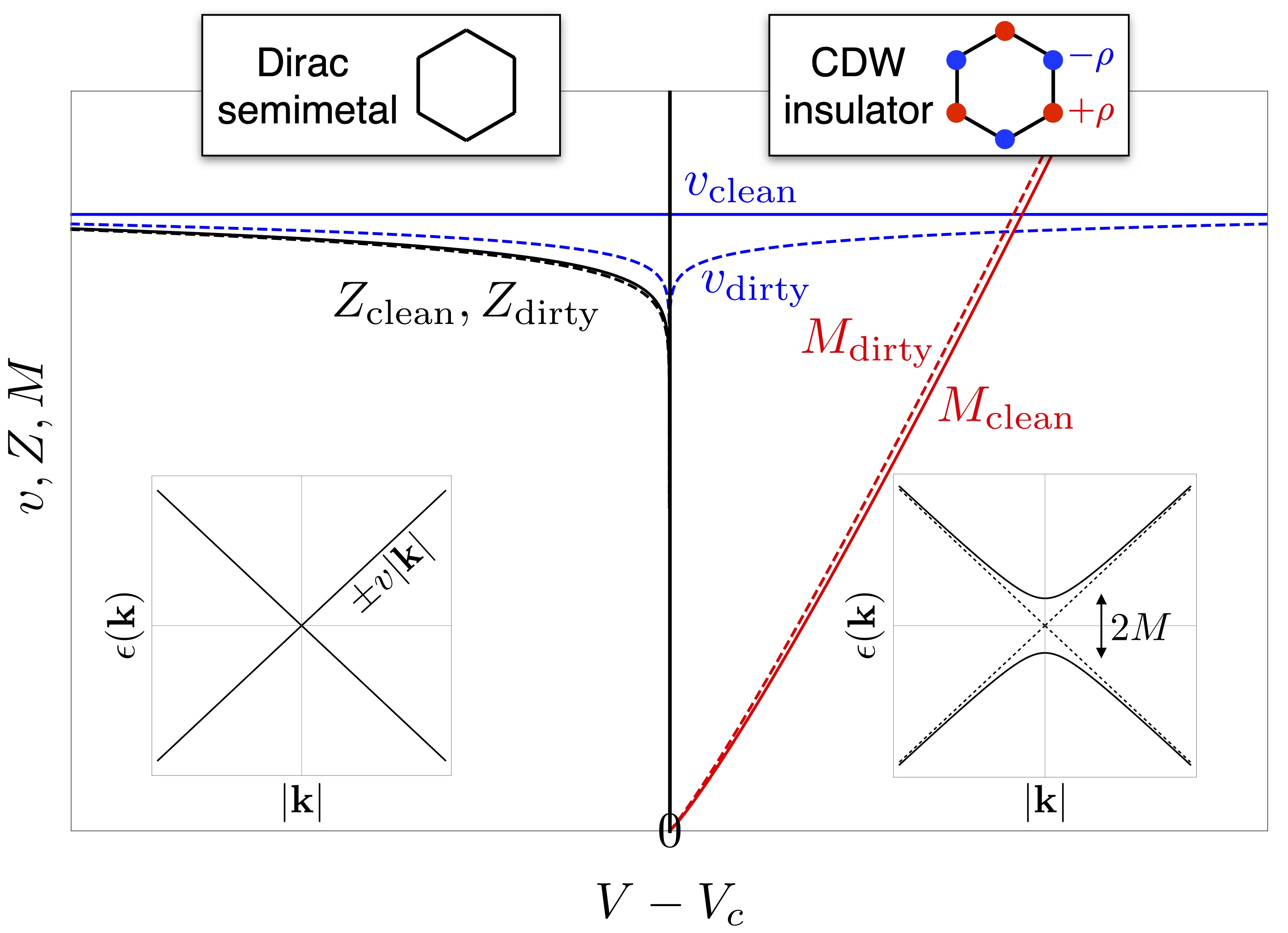opening of a gap in the Dirac fermion spectrum. Approaching the multi-critical point from the disordered phase, the fermionic