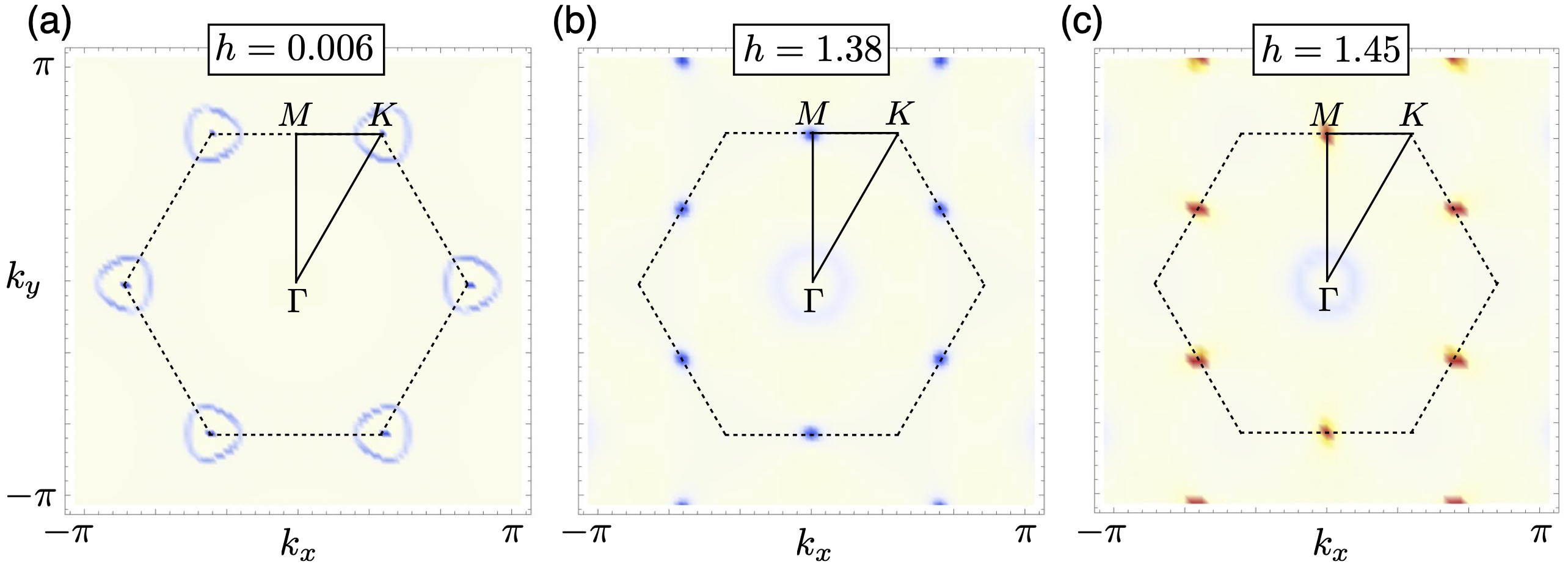 the three $M$ points in the Brillouin zone, where the Majorana fermions form Dirac cones, resulting in a change of Chern number by