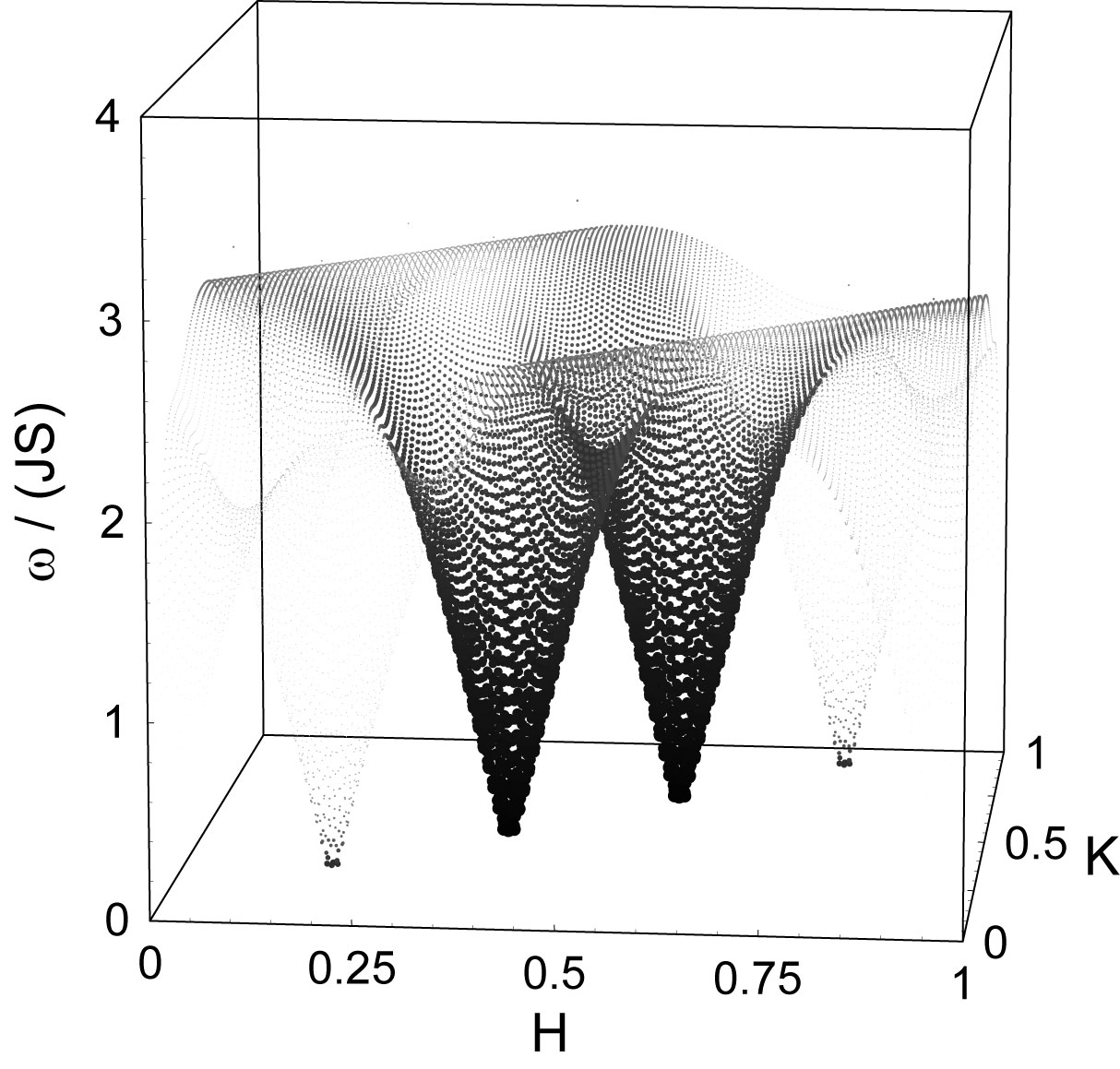 theory for a simple spin-only model. The magnon dispersion relation and the magnetic structure factor are calculated for diagonal and