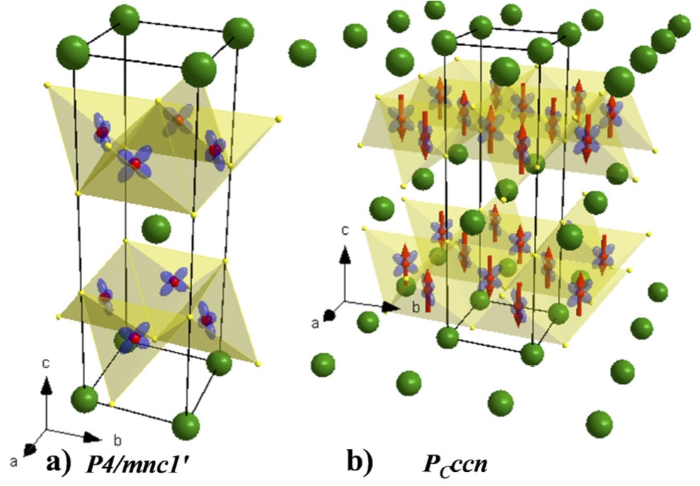 which the lattice parameters jump, the Fermi surface partially gaps and the spins undergo a 90deg in-plane reorientation. Here,