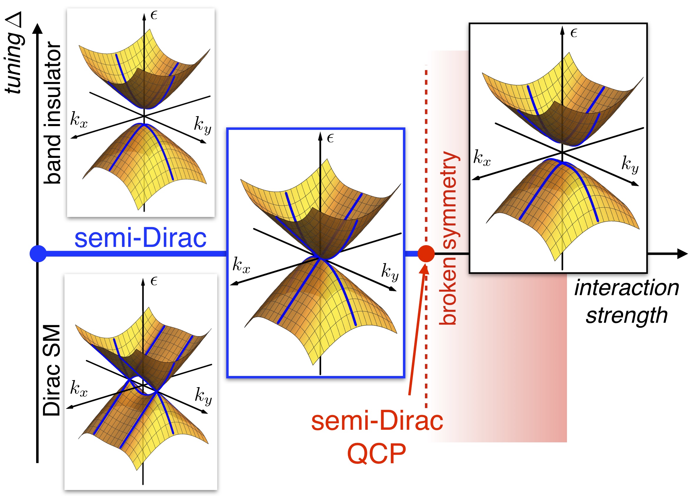 of symmetry-breaking phase transitions of semi-Dirac electrons. However, as in the electronic case, the Majorana fermions acquire an