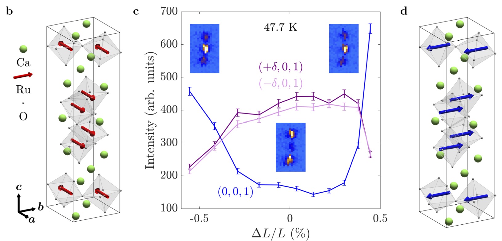 crystals of Ca3Ru2O7, using neutron and resonant x-ray scattering to simultaneously probe the structural and magnetic responses.
