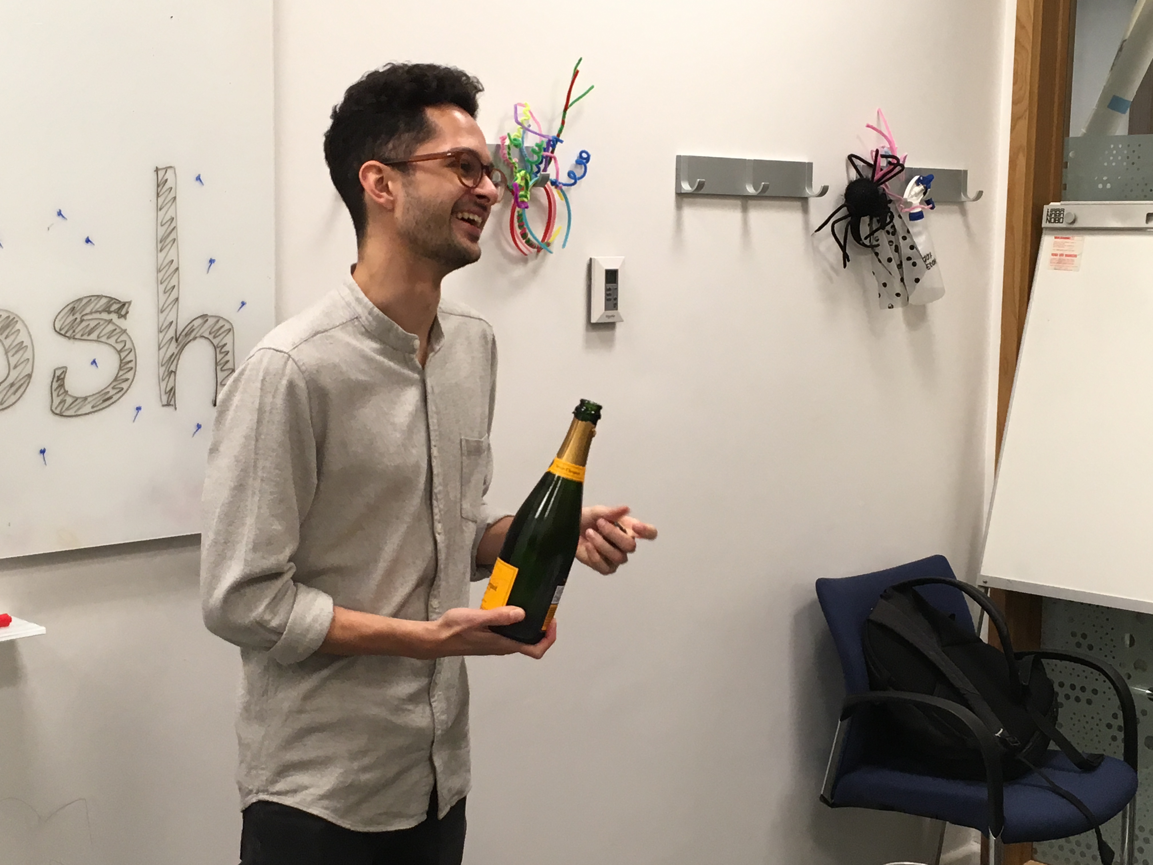 Celebrating the Neuron Double! Feb 2016; Right, Jason introduced David Prober, 2018