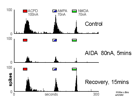 also reduced NMDA and AMPA responses to a significant extent. An effect of AIDA on NMDA
