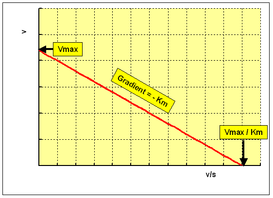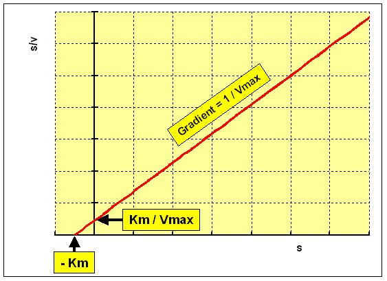 This plot overcomes the problem of uneven spacing of points, and undue weight given to points at low concentrations of substrate. However, it has the disadvantage that [S] is used on both axes, and hence pipetting errors, which lead to errors in the true concentration of substrate available, are multiplied, resulting in lower precision of the estimates of Km and Vmax.