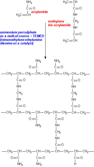 gel is prepared by co-polymerising acrylamide and methylene bis-acrylamide;