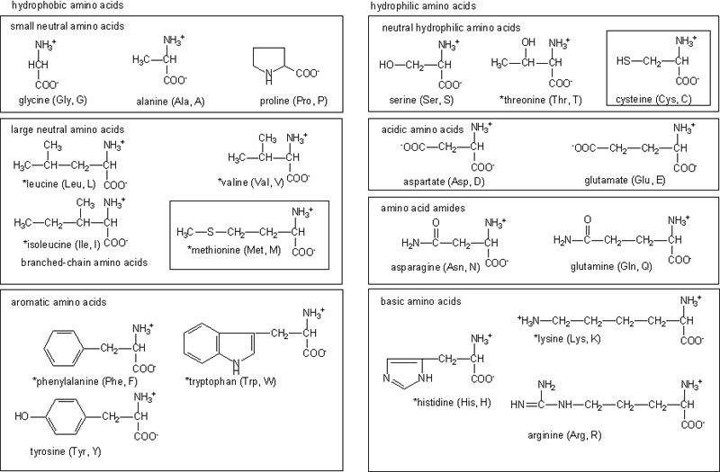 The diagram below shows the structures of the amino acids. Click here to download a printable version.