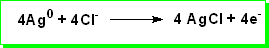 At the anode metallic silver is oxidised to silver chloride: ![]()