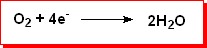 At the cathode oxygen is reduced to water: ![]()