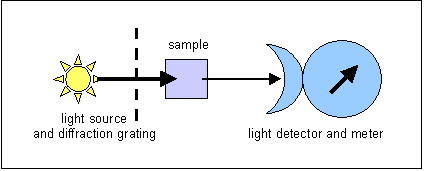 spectrophotometry, light of s defined wavelength is shone through the sample,
