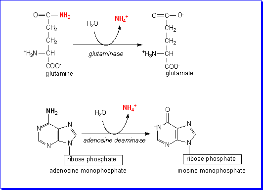by the action of glutaminase, and from adenosine, by the action of adenosine