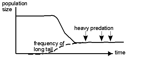 b) Evolution of a costly male trait preferred by females e.g. male peacock's tail - may actually reduce population size, because predation on males increases (hard selection again). Here, the evolution of the peacock's tail we still call evolution!