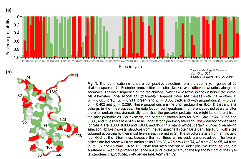 "positive selection" (i.e. selection for rapid changes in protein sequence):