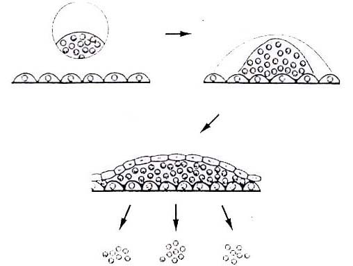 can be reversed by antibodies to E-cadherin so presumably this cell-adhesion