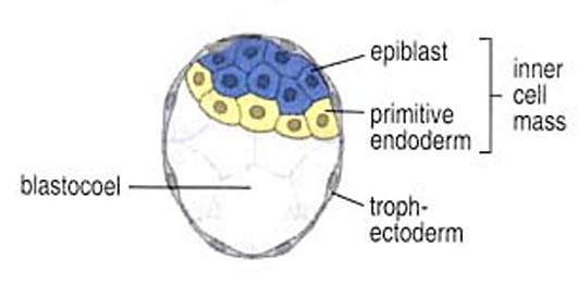 and which give rise to the embryo proper. Just before it implants, the blastocyst