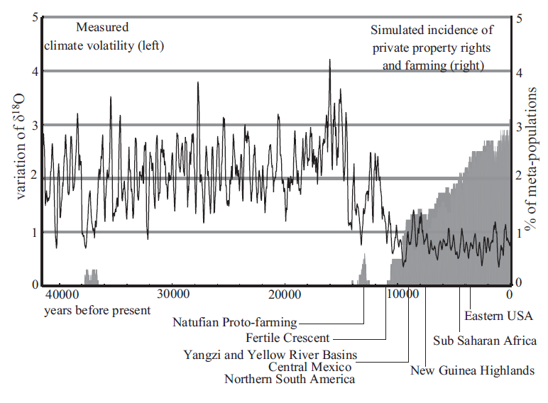 Instead Bowles and Choi have developed an evolutionary game theory model of the returns from hunting and gathering versus