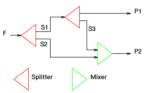 Note that the component flows of S1 and S2 should of course add up to the component flows of Sinput!