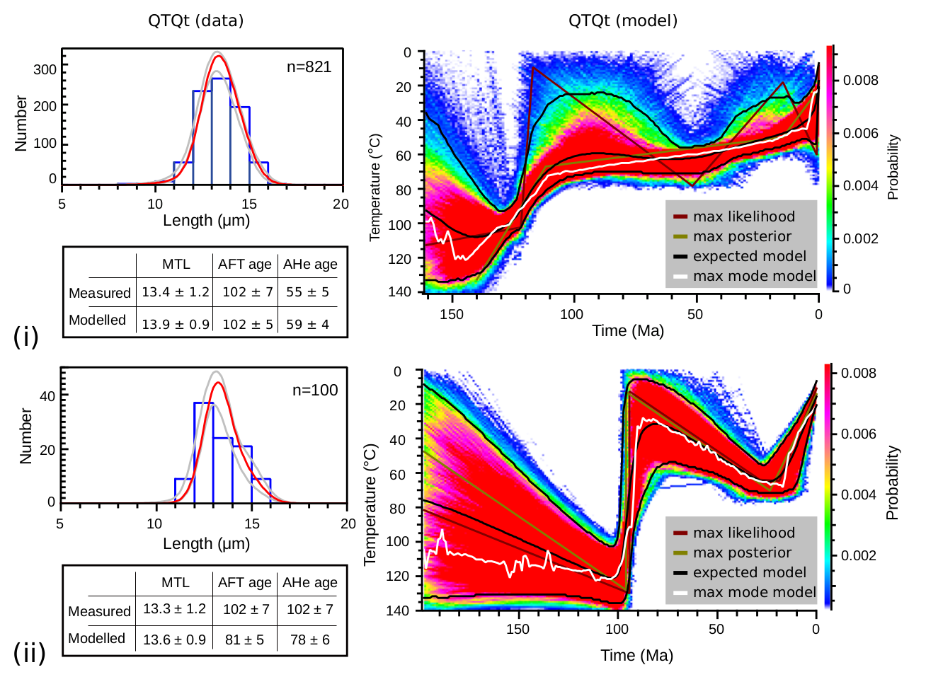 extract meaningful thermal history information from the data. As for QTQt, its t-T reconstructions
