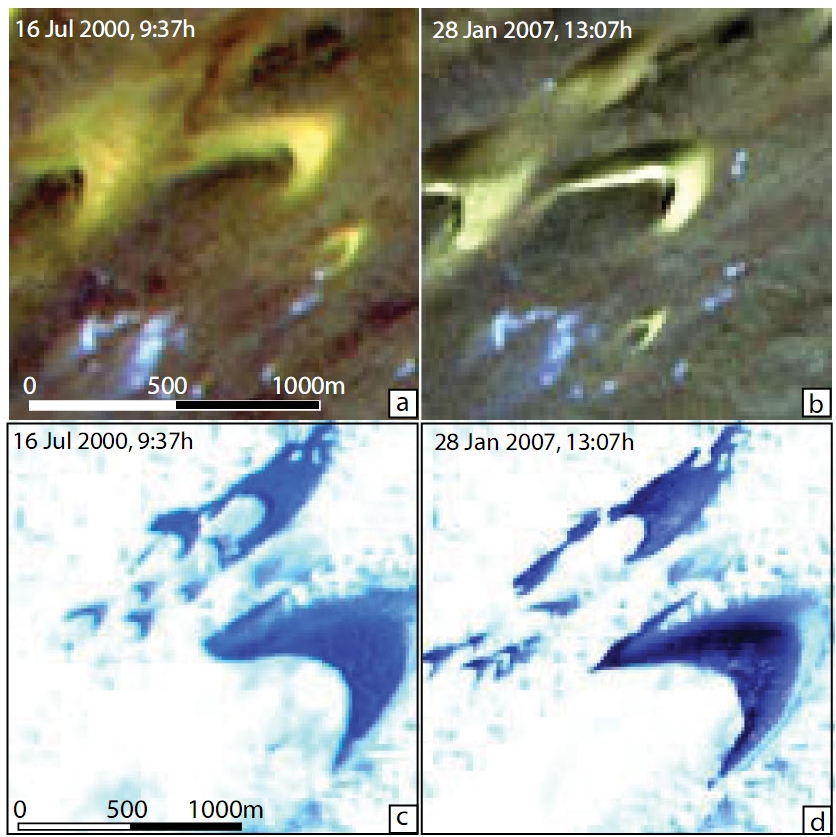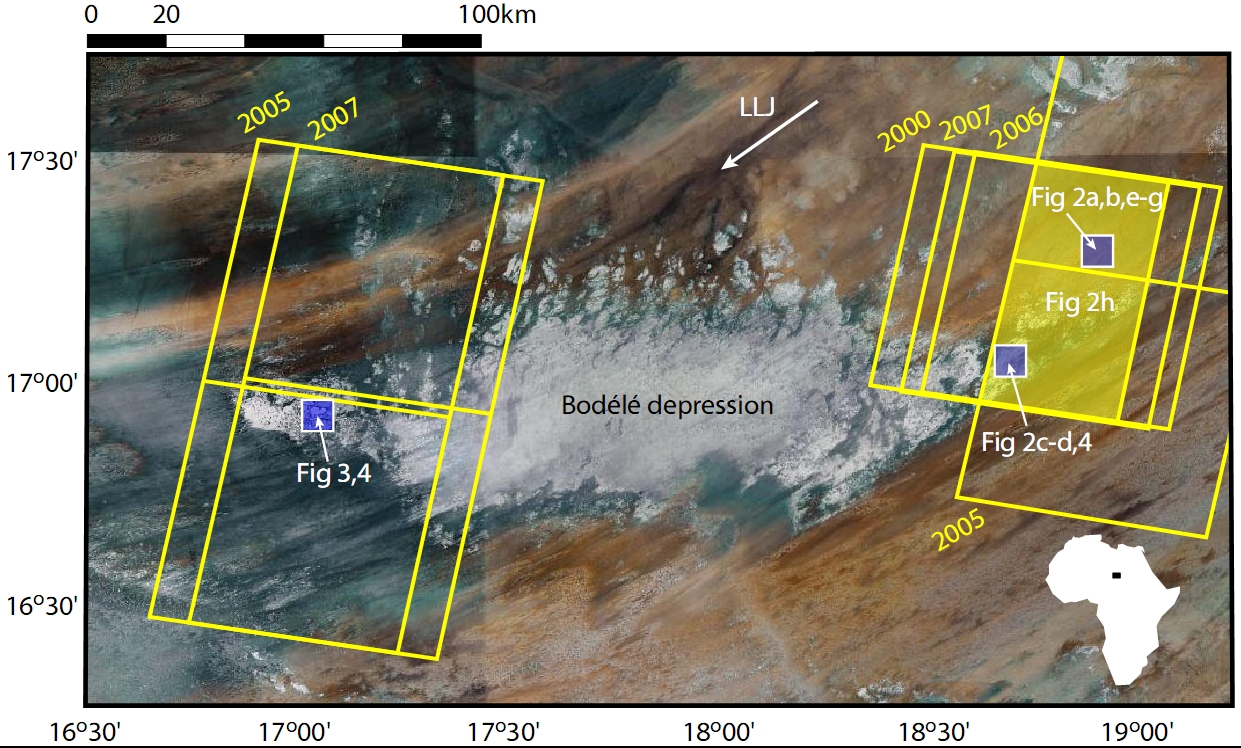 of the Bodélé depression, taken in 2000, 2005, 2006 and 2007 (Figure 1). Because the footprints of