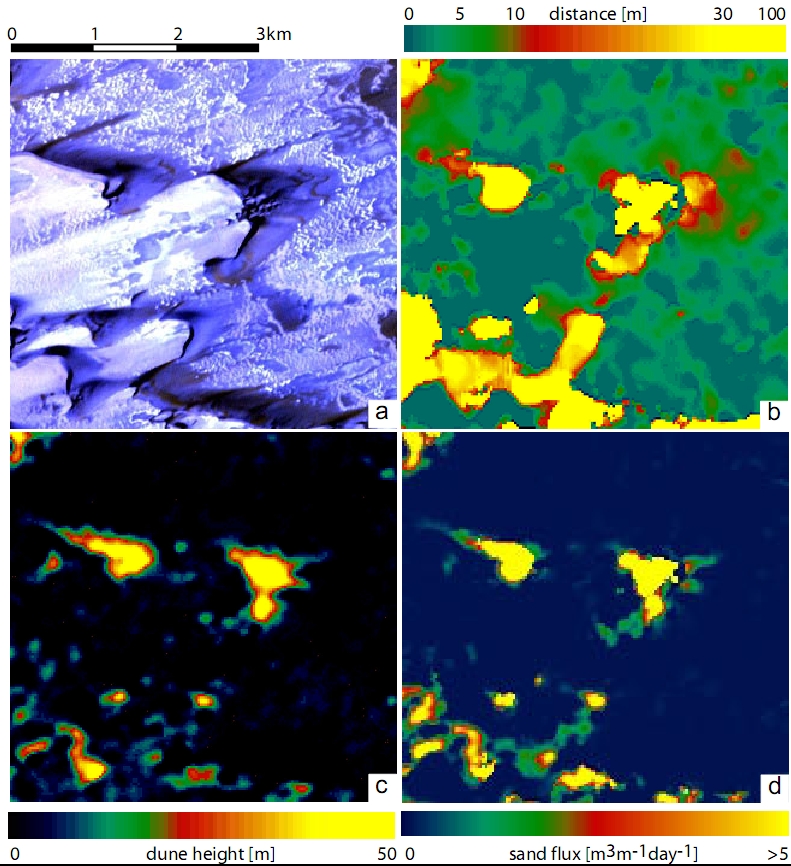 out by (a) geodetic field surveys and/or long term monitoring of stakes set out in the (inter)dunes (e.g., Stokes et