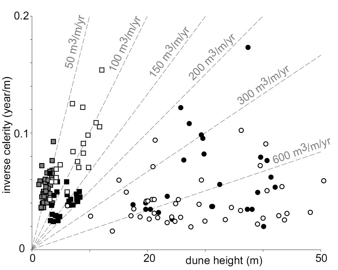 sand dune is calculated by multiplying its elevation above ‘base level’ with the celerity at the same