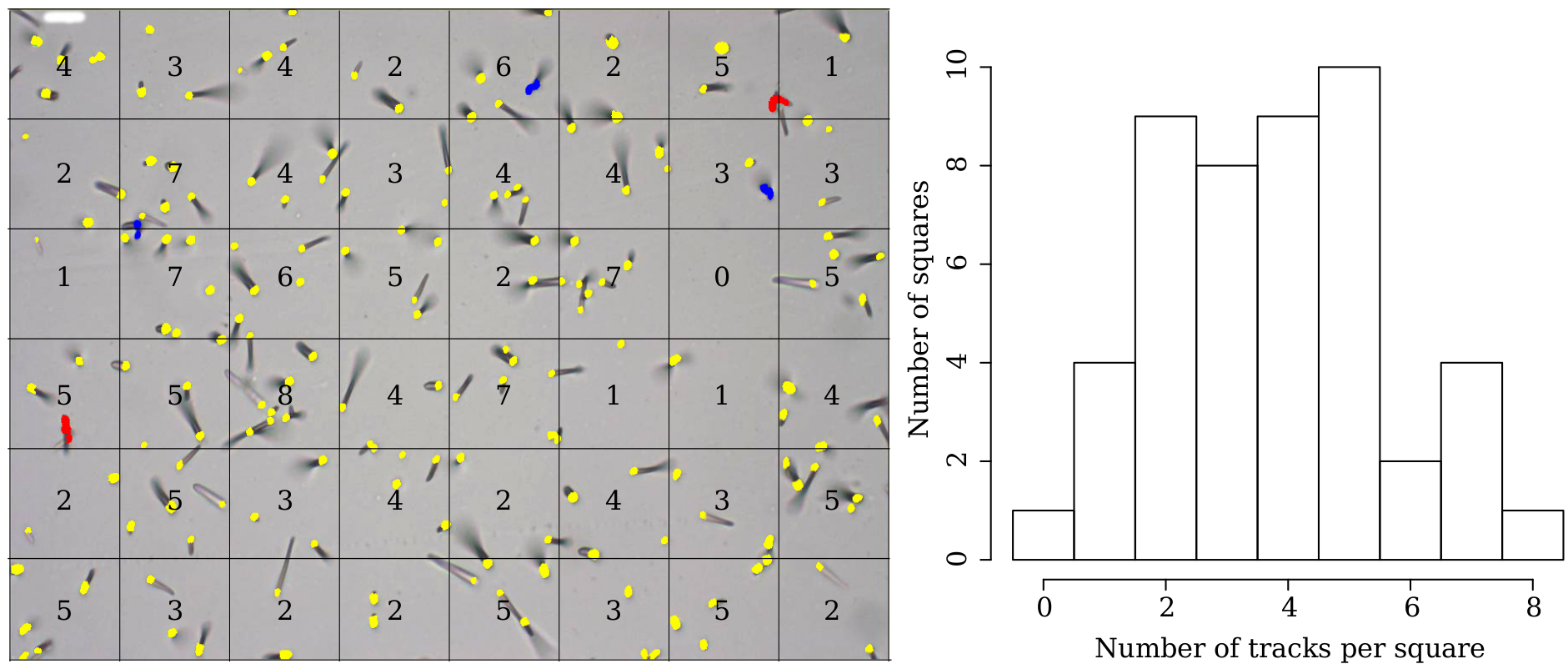 attached to a dosimeter glass is subdivided into a number of equally sized squares (Fig. 6.1, left). Counting the