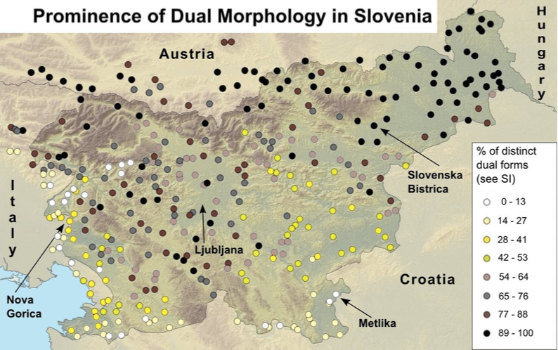 Extending his view of singular vs. plural in German and English, Sauerland (2008) claims that the Slovenian dual is semantically compatible with singular reference and dual reference (‘one or two’).