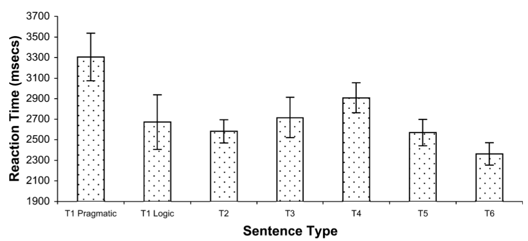 Memory task sandwitching sentence verification (à la Bott & Noveck 2004):