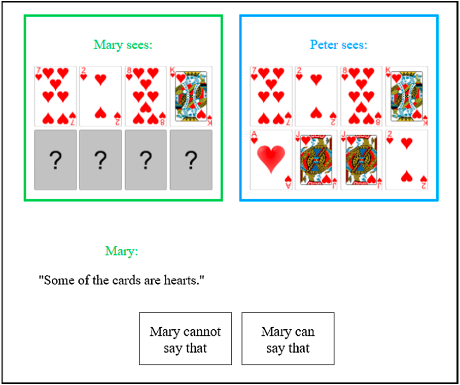 Idea: With the assumption that the speaker is cooperative, one may draw extra inferences based on their (linguistic or non-linguistic) behaviour