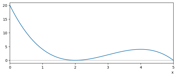 Fig. 3.2 \(y(x)=-x^3+9x^2-24x+20\) on the domain \([0,5]\)#