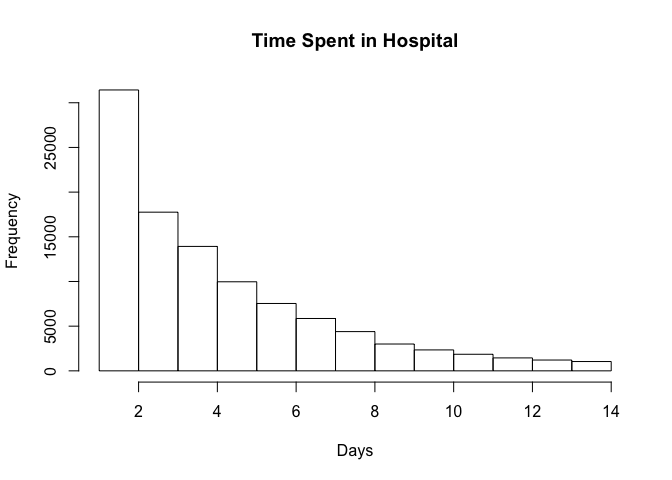 hist(diabetic_data$time_in_hospital, breaks = num_breaks, main = "Time Spent in Hospital", xlab = "Days")