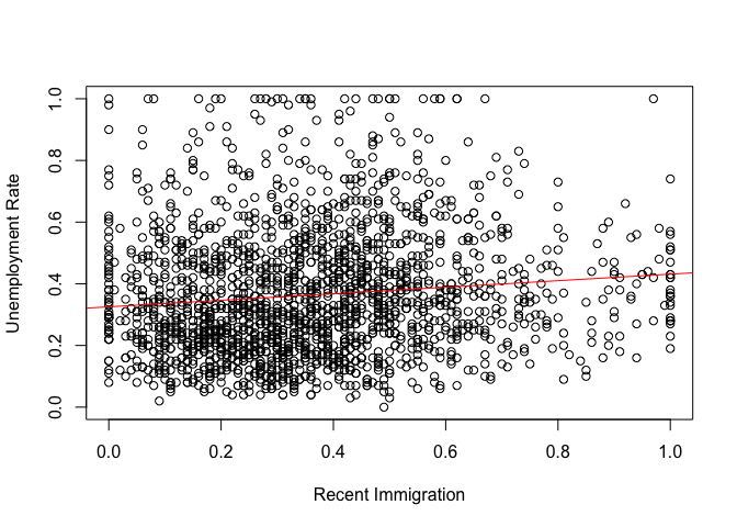 model_immigration <- lm(UnemploymentRate ~ RecentImmigration5, data = communities)