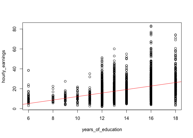 model1 <- lm(hourly_earnings ~ years_of_education, data = income_data)
