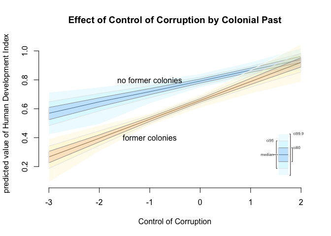 | 1 (was colonized) | intercept + dummy coefficient * 1 | coefficient of control of corruption |
