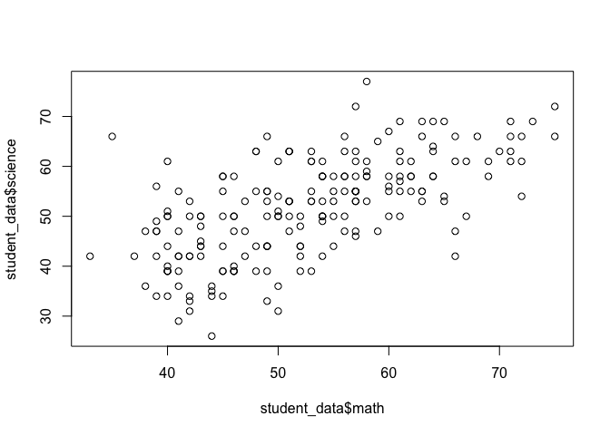 plot(student_data$math, student_data$science)
