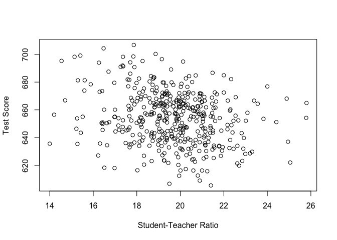 The formula describes the relationship between the dependent and independent variables, for example dependent.variable ~ independent.variable. Recall from last week that we used something very similar with t-test when comparing the difference of means.In our case, we'd like to model the relationship using the formula: score ~ STR |