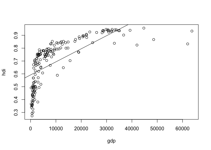 model1 <- lm(hdi ~ gdp, data = world_data)