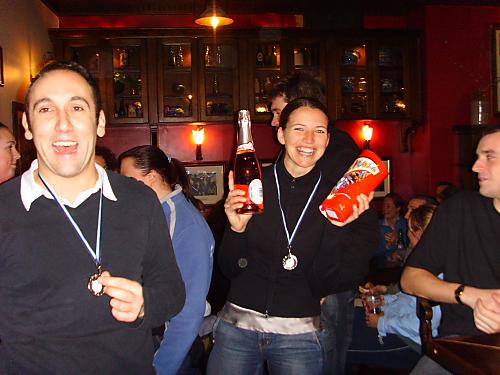 The triumphant Partystars squad from the Westway league at the Socialsports presentation night! L-R Lee, Chris, Nick, Elizabeth (at the front interloping as usual), Hayley, Gabrielle, Kirsty, Mat, Charlotte.