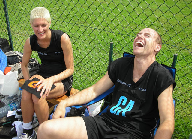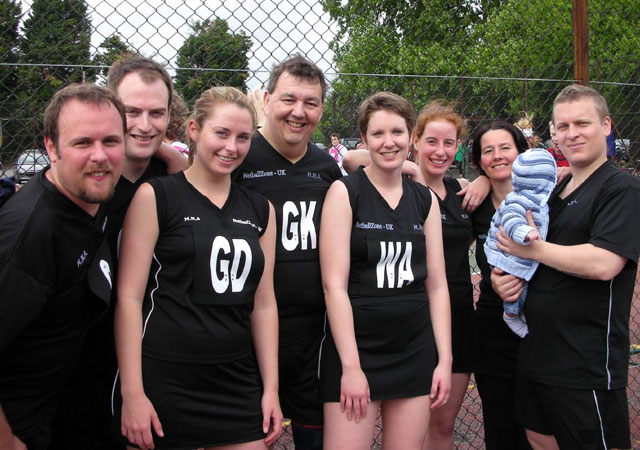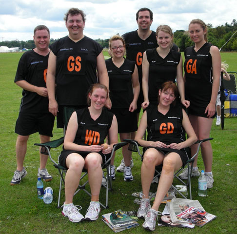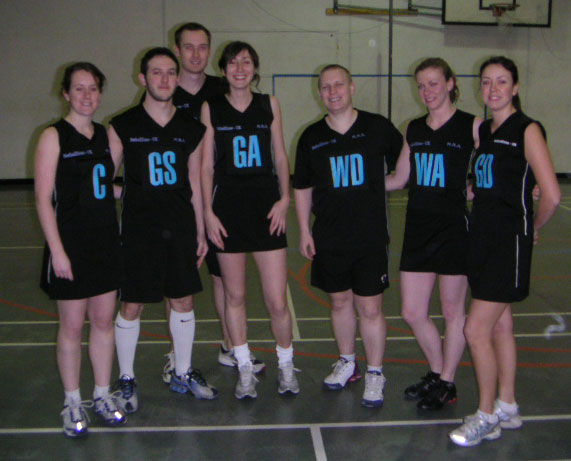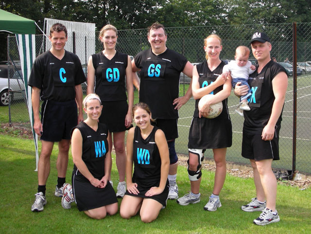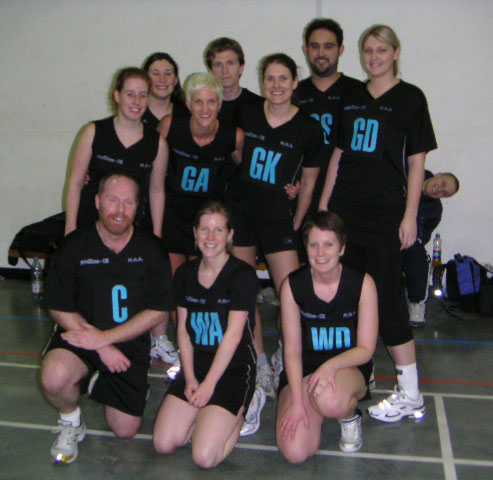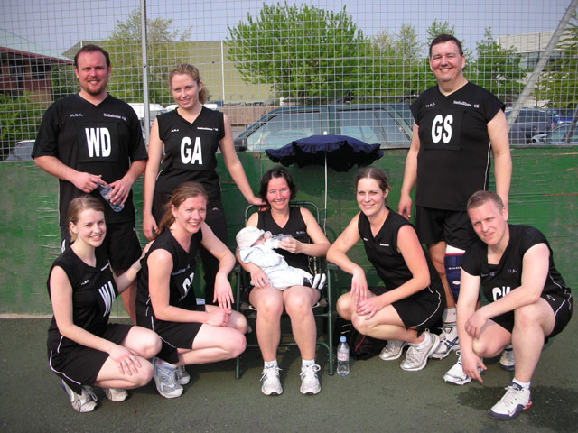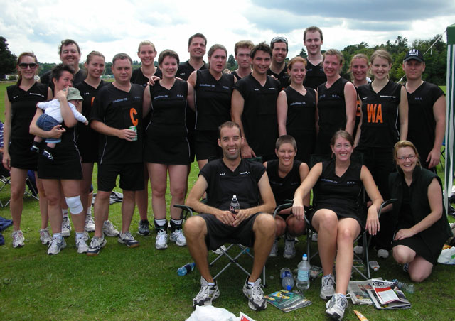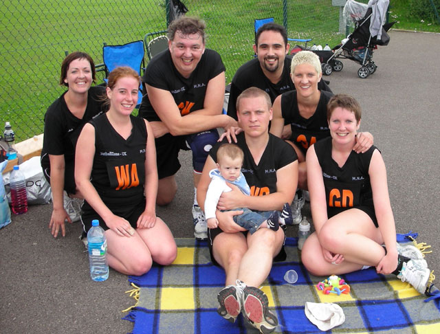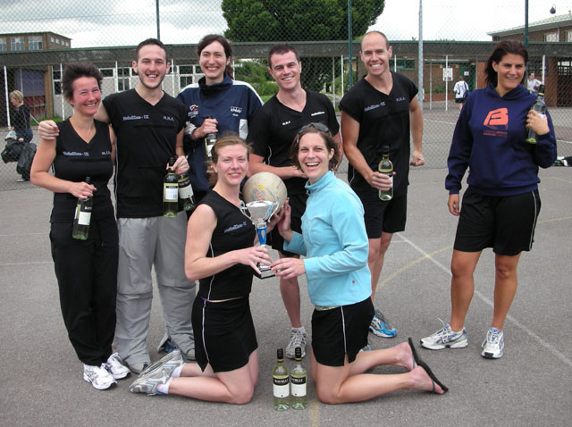 ... but only because Allstars beat the team they could only tie against! L-R Briohny, Bea, Andy, John (and Ethan!), Mat, Roz, Bex. Plus we look better... and we have the mascot! :-)