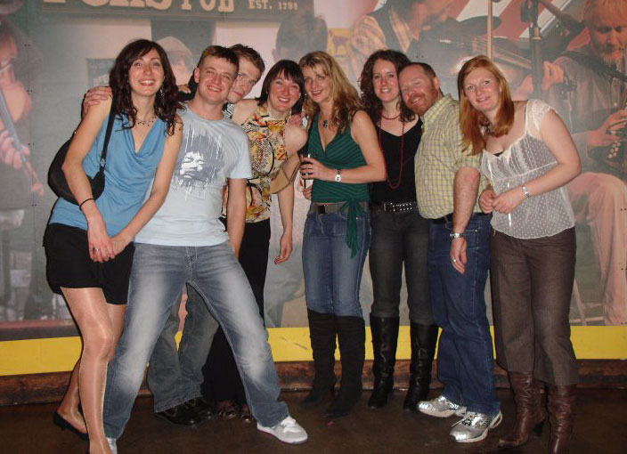 Party Stars at TNT - versatility specialists :-) L-R Ian, Dan, Gen, Andy, Bex, Bea, Tina, John (holding the baby - as usual :-) )