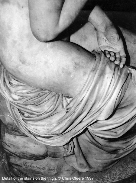 Figure 5: Detail of stains on the thigh of the statue (98K)