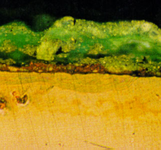 Figure 2: Coupon covered with cuprite and paratacamite-250 microns