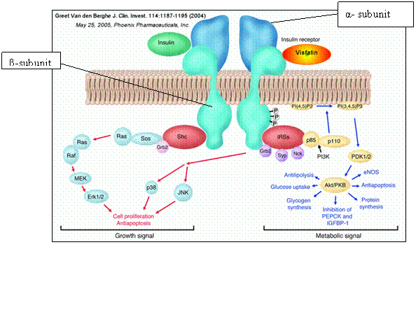 The IRS-1 receptor proteins are an example of a closely-related protein class which elicit a signal when activated by insulin (INSR1). The INSR-1 receptor allows proteins with an SH2 domain to occupy its phosphorylation sites. Once the INSR-1 has been phosphorylated by the INS- receptor, they in turn phosphorylate a series of kinase enzymes reliant upon PI3K (Protein kinase B for example) in a cascade series of intracellular reactions. These will eventually lead to regulation of enzymes which modulate glucose uptake and metabolism of proteins and lipids. Diabetes mellitus, type 1 and type 2 is strongly connected to insulin. It has been recently suggested that a reduced sensitivity of insulin by the insulin receptor may be a contributing factor to the development of type 2. In some specific contexts, antibodies may focus on the insulin receptor, producing insulin resistance of the receptor, leading to hyperglycaemia.