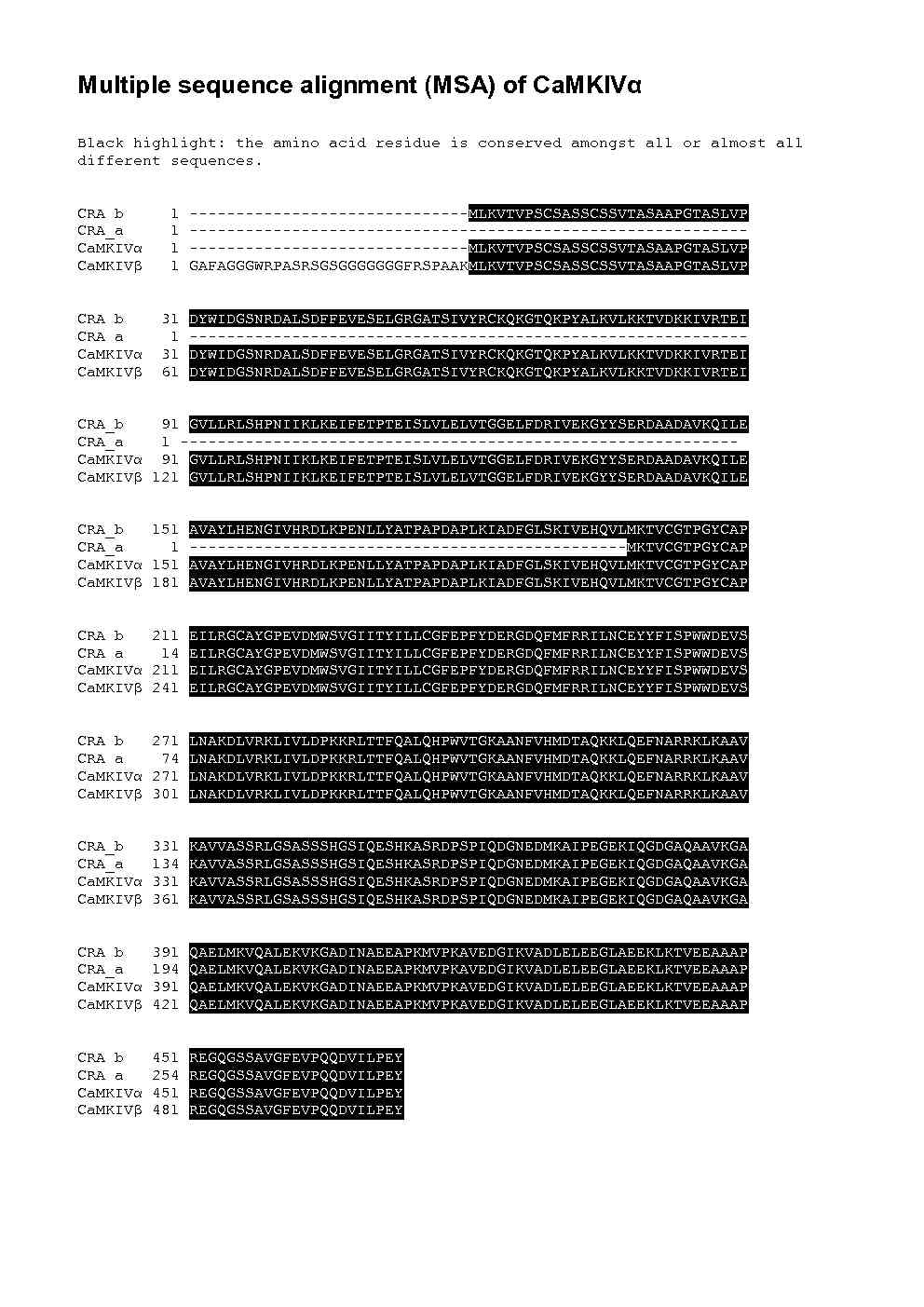 From the multiple sequence alignment file it is seen that CAMK4 is in fact roughly 30 aa longer than CaMKIV, CAMK type IV and CaMKIV CRA_b, whilst CaMKIV CRA_a is a much shorter protein.