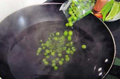 Pour the green been into the pan, dish up for use after they turned dark